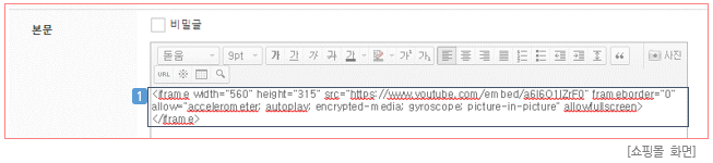 └ 모바일쇼핑몰에서는 에디터 지원이 되지 않아 HTML 소스, 이미지 등이 정상적으로 출력되지 않을 수 있는 점 유의하시기 바랍니다.