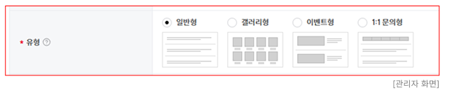 - "1:1 문의형"으로 등록한 경우 게시판 수정 시 유형 변경이 불가능합니다.