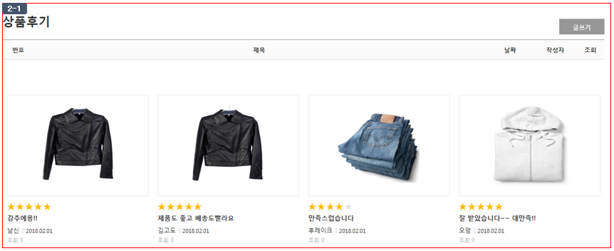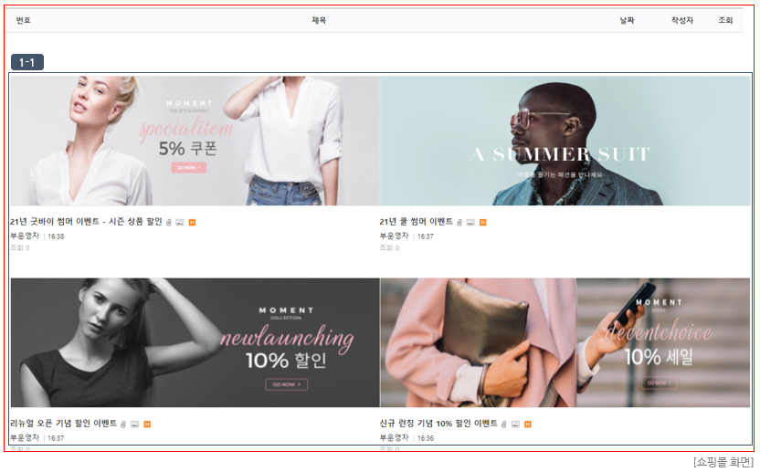 ② "업로드 이미지" : 쇼핑몰 게시글 등록 시 첨부파일로 등록한 이미지가 리스트 이미지로 노출됩니다. (이미지 (2-1) 참고)