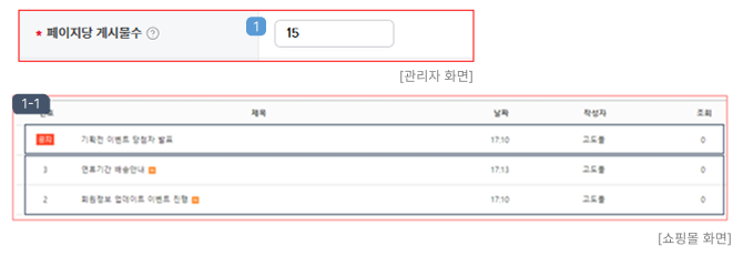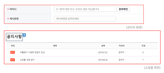 : 관리자 화면 및 쇼핑몰 화면에 노출되는 게시판명을 설정합니다.