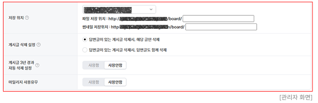 - 답변관리 기능 사용전에 답변글로 달았던 게시글은 "답변관리 기능 사용" 설정 체크 후 저장 시 답변완료 상태로 변경해야만 노출되니 주의하시기 바랍니다.