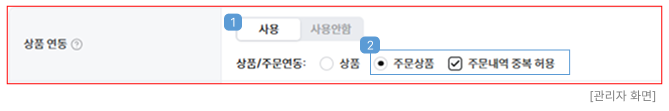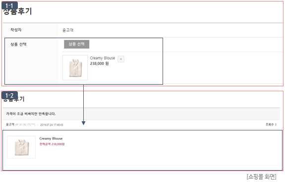 ① "상품 이미지" : "상품 연동" 사용 설정 시 선택이 가능하며, 쇼핑몰 게시글 등록 시 연동한 상품 이미지가 리스트 이미지로 노출됩니다. (이미지 (1-1) 참고)