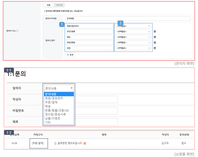 - "일반형, 1:1 문의형"에서 설정이 가능합니다.