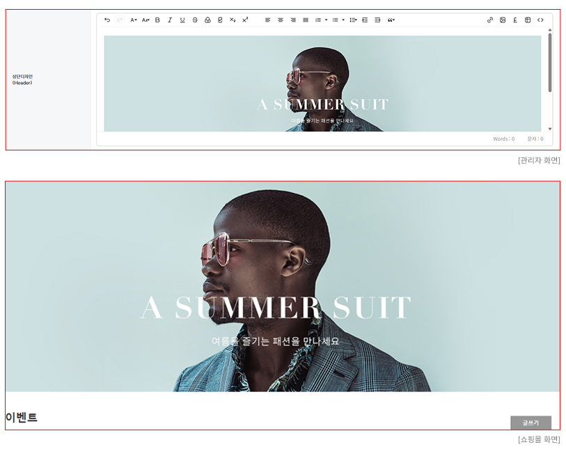 - 현재 에디터는 PC쇼핑몰에만 지원됩니다.