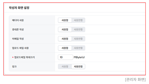 : 게시글 작성 시 업로드 파일의 용량을 설정할 수 있습니다.