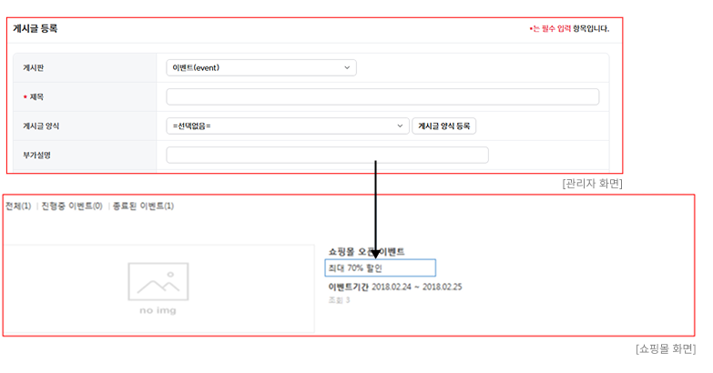 - "이벤트형" 게시판에서만 사용 가능합니다.