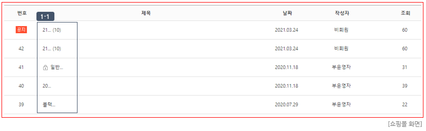 - "1:1 문의형" 게시판은 댓글 기능이 제공되지 않습니다.