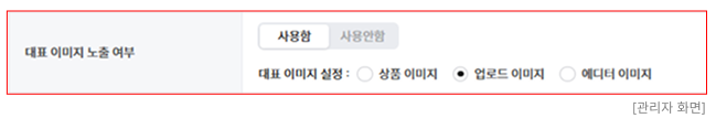 - "대표 이미지 노출 여부"를 "사용"으로 체크했을 경우에만 노출되는 항목입니다.
