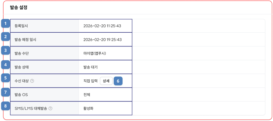 - 메시지 등록 시 설정한, 메시지 발송 일시를 표시합니다.