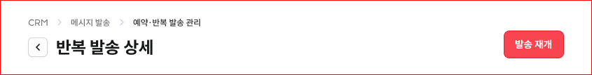 - 반복 발송건의 상세 정보를 확인하고 발송 중지/재개를 할 수 있는 페이지입니다.