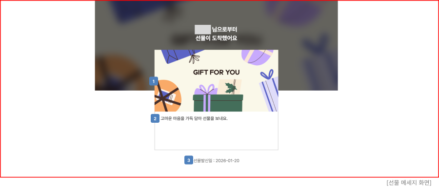 ① 선물카드 : 구매자가 선택한 선물카드가 노출됩니다.