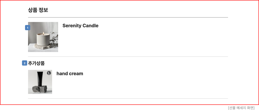 ② 선물 메시지 : 구매자가 작성한 선물 메시지가 노출됩니다. 구매자가 메시지를 0자 작성한 경우, 미노출됩니다.