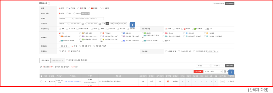 - 선물하기 주문은 주문 정보에 “선물하기” 로 표시됩니다.