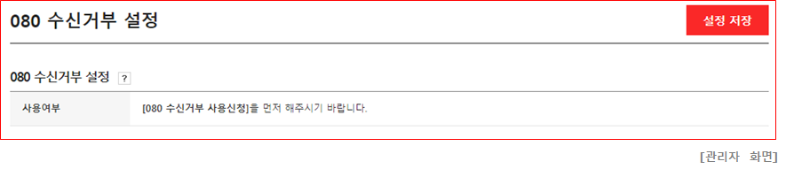 - [080 수신거부 사용신청] 클릭 시 서비스 신청 페이지로 이동됩니다.