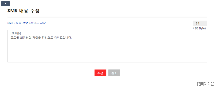① [수정하기] : 예약발송이거나 결과수신대기 상태인 경우 SMS 내용을 수정할 수 있습니다. [수정하기]를 클릭하면 "SMS 내용 수정"팝업이 노출됩니다.