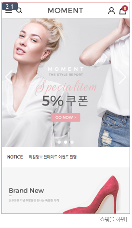 - 실제 쇼핑몰에 노출중인 스킨으로, [미리보기] 클릭 시 쇼핑몰 화면과 동일한 화면이 노출됩니다. (이미지 (2-1) 참고)