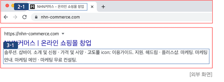 ② 타이틀 : 입력한 텍스트가 브라우저 상단에 노출됩니다.(이미지 (2-1) 참고)