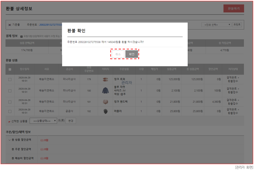 · 환불 진행 재확인 사용설정