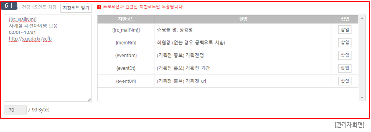 - 상점명 및 해당 기획전에 대한 내용(기획전명, 진행기간, 단축 URL등)이 자동으로 입력됩니다.(이미지 (6-1) 참고)