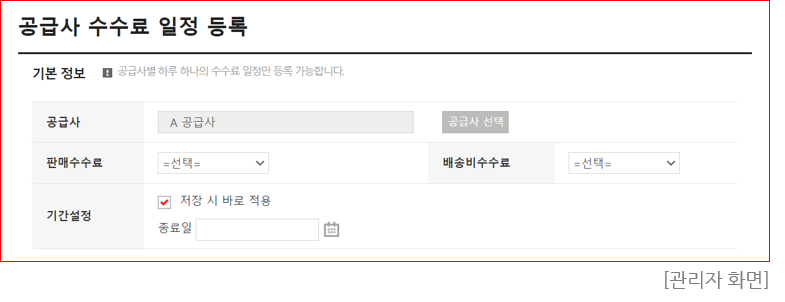 └ 공급사별로 특정기간동안 적용할 수수료를 설정할 수 있습니다.